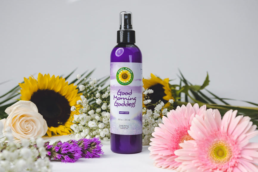 Use Good Morning Goddess to wake up your curls in the morning. This light mist allows you to add a bit of moisture as you style. Also use this product to keep your locs and braids highly moisturized.