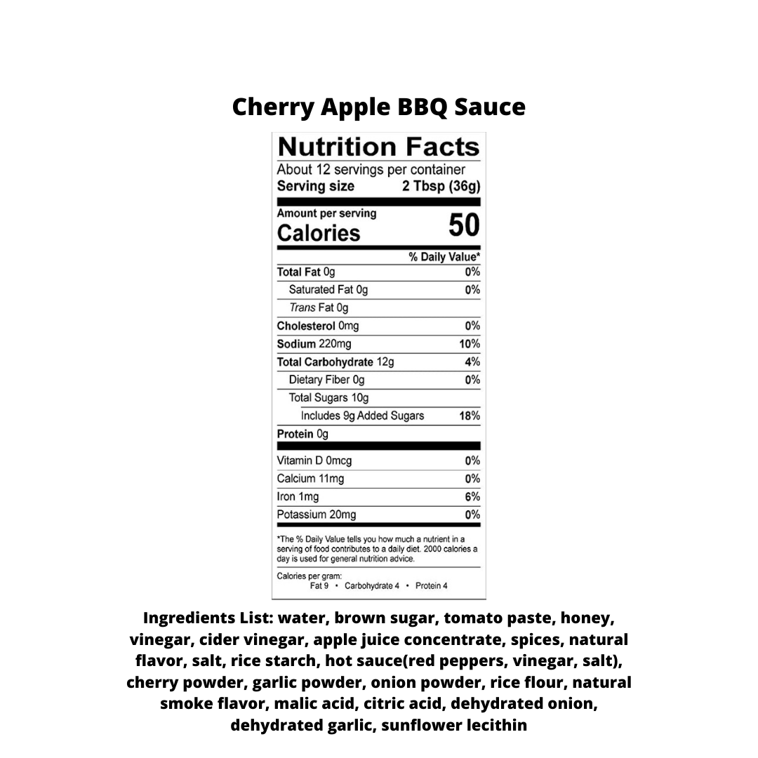 - 1x 14.8oz Cherry Apple BBQ Sauce